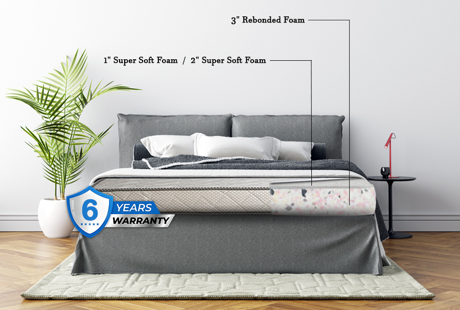 Experience the perfect fusion of comfort and support with Comfy Plus, a hybrid mattress designed to deliver the best of both worlds. Featuring a supersoft foam layer on top, it offers a plush, luxurious feel that contours to your body for enhanced comfort. Beneath it lies a hard bonded base layer, providing the firmness and stability needed for proper support and alignment throughout the night.
