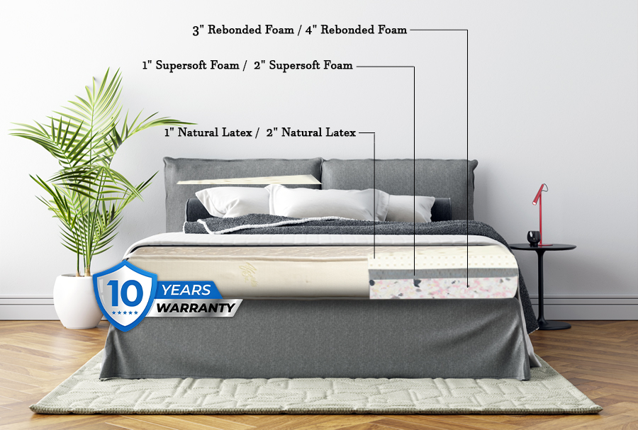 Introducing Latex Platina, a revolutionary hybrid mattress that combines the best of nature and technology. With 100% natural latex as the top layer, this mattress offers a perfect balance of luxurious comfort and firm support. The natural latex layer contours to your body, providing pressure relief and a restful sleep, while the combination of foam and hard rebounded layers ensures long-lasting durability and added firmness for optimal support.
